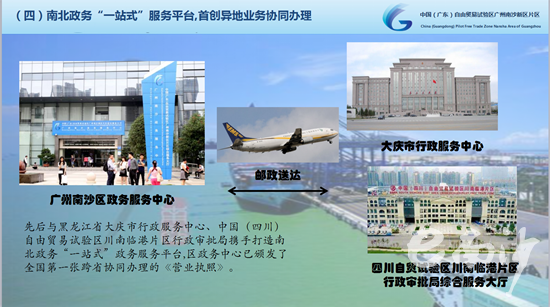 “證照分離”實(shí)現(xiàn)企業(yè)辦證更加便捷高效。南沙區(qū)選取企業(yè)反映訴求突出、審批頻次較高、改革預(yù)期效果較明顯、符合南沙自貿(mào)片區(qū)重點(diǎn)產(chǎn)業(yè)發(fā)展需求的132項(xiàng)商事登記后置審批事項(xiàng)進(jìn)行分類改革,加強(qiáng)風(fēng)險(xiǎn)評(píng)估和進(jìn)行動(dòng)態(tài)調(diào)整,解決“先照后證”之后的“辦證難”問(wèn)題。圍繞行政審批事項(xiàng)分類改革、創(chuàng)新行政審批服務(wù)運(yùn)行模式、強(qiáng)化事中事后監(jiān)管三大改革任務(wù),全區(qū)提出了14項(xiàng)具體改革措施,細(xì)化制定了“證照分離”改革試點(diǎn)方案和優(yōu)化許可經(jīng)營(yíng)項(xiàng)目審批服務(wù)方式、深化商事登記便利化改革、加強(qiáng)事中事后監(jiān)管3個(gè)配套方案,形成了“1+3”的改革方案體系。 截止今年7月,共受理業(yè)務(wù)872宗,累計(jì)為企業(yè)節(jié)省辦理時(shí)間8440天,減少申請(qǐng)材料2981份。跨省政務(wù)合作首創(chuàng)異地業(yè)務(wù)協(xié)同辦理。為積極響應(yīng)國(guó)務(wù)院關(guān)于東北地區(qū)與東部地區(qū)部分省市對(duì)口合作工作方案,方便企業(yè)跨區(qū)域投資辦事,南沙區(qū)先后與黑龍江省大慶市行政服務(wù)中心、中國(guó)(四川)自由貿(mào)易試驗(yàn)區(qū)川南臨港片區(qū)行政審批局、貴州貴定縣政務(wù)中心、江西龍南縣政務(wù)中心等市、區(qū)(縣)攜手打造政務(wù)“一站式”服務(wù)平臺(tái),在企業(yè)投資業(yè)務(wù)異地辦理領(lǐng)域開(kāi)展合作,后續(xù)還將陸續(xù)推出企業(yè)投資、準(zhǔn)入、準(zhǔn)營(yíng)等多個(gè)方面辦證服務(wù)。
