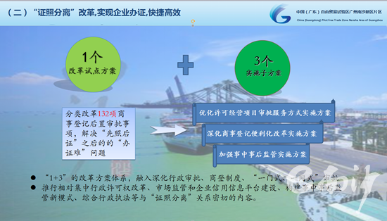 據(jù)了解,近年來(lái),南沙區(qū)按照國(guó)家關(guān)于“簡(jiǎn)政放權(quán)、放管結(jié)合、優(yōu)化服務(wù)”的總體要求,以國(guó)家新區(qū)和自貿(mào)區(qū)“雙區(qū)疊加”優(yōu)勢(shì)為契機(jī),大膽探索、先行先試,先后推出多項(xiàng)全國(guó)、全省的創(chuàng)新示范,其中6項(xiàng)改革創(chuàng)新成果先后入選全省、全市復(fù)制推廣改革創(chuàng)新經(jīng)驗(yàn)。